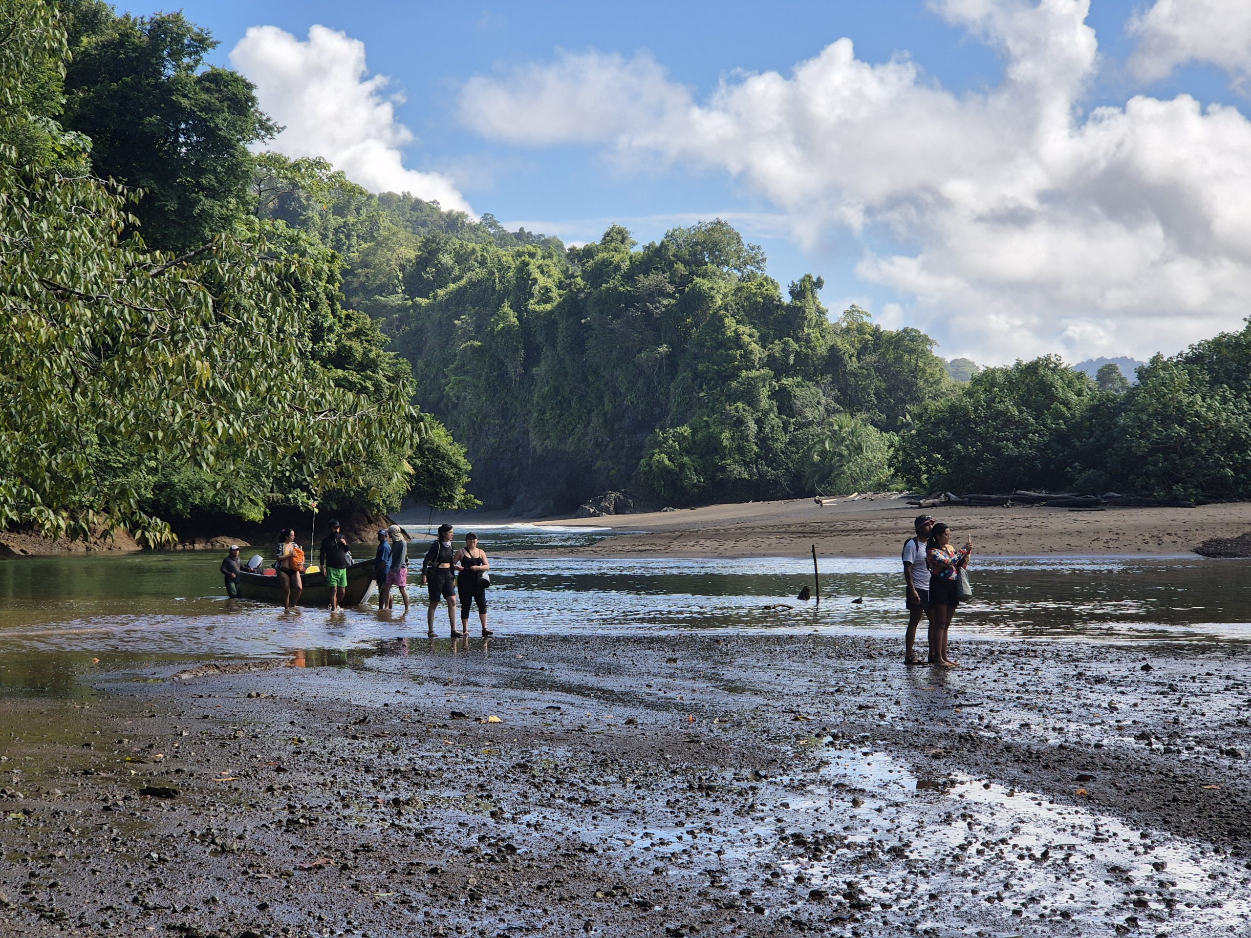 Salida hacia El Brazo, introducción a la comunidad, taller de jagua e introducción a la lengua Emberá. Noche en el resguardo.