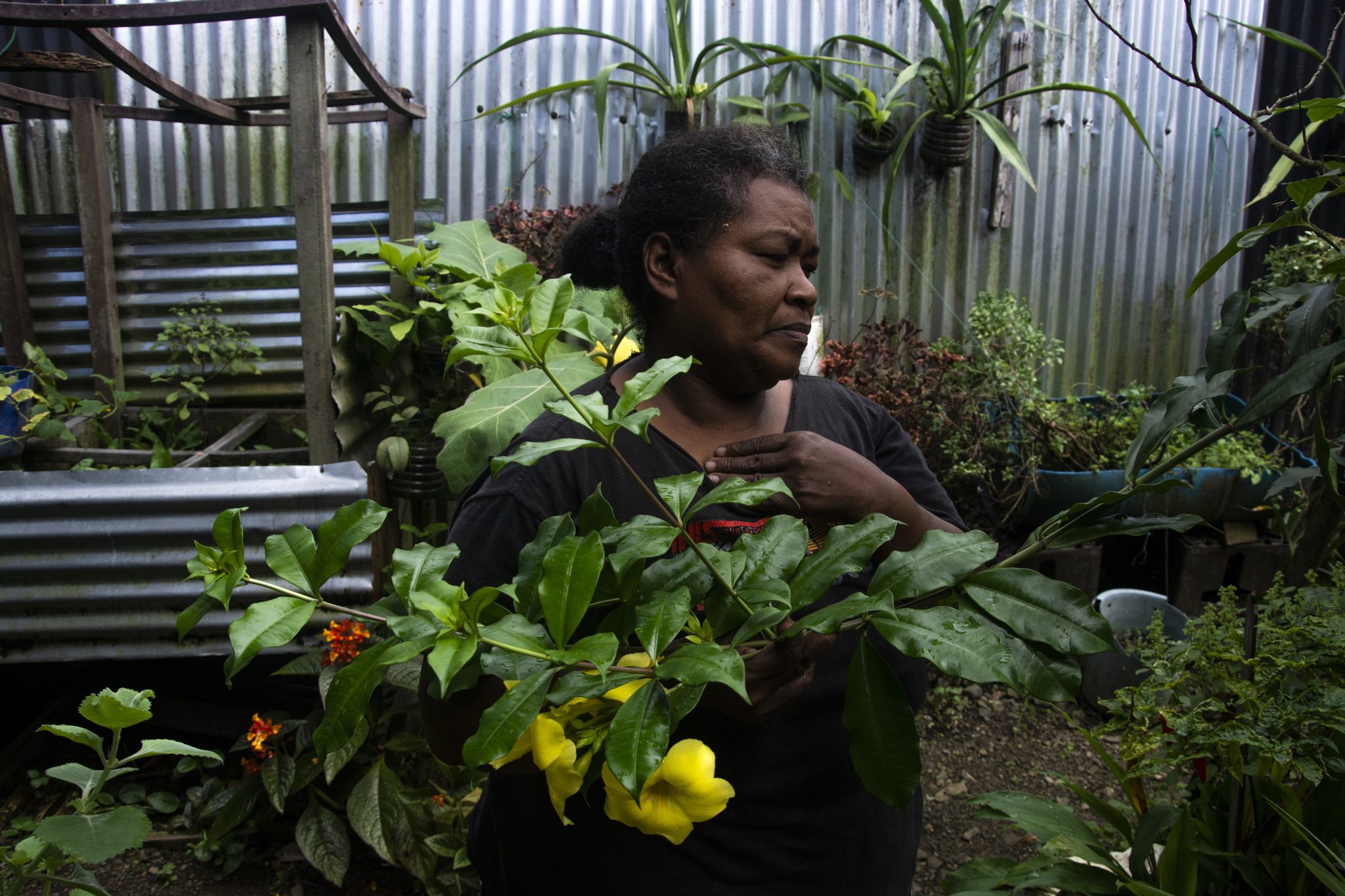 Mujer Solaneña habitante del Golfo de Tribugá y tejedora, se desempeña investigando en el manejo de materias nativas y en su pigmentación desde procesos ancestrales aprendidos en el territorios. Teresita se enfoca en la investigación y creación utilizando diferentes fibras y tintes realizados por ella desde elementos de la flora del territorio, así mismo ha desarrollado técnicas de teñido y tejido desde diferentes materiales. Se desempeña como docente de técnicas ancestrales y acompaña desde su saber los procesos de creación de múltiples grupos y personas dentro y fuera del territorio.